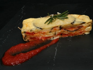 Montamos otra capa de berenjenas, tomate y queso y terminamos con las berenjenas.
