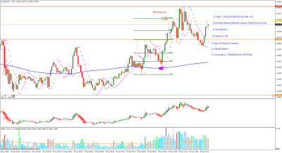Estrategia: El precio hace impulso largo parándose justo en la resisencia asiática, hace corrección en ABC, busco ruptura de la resistencia asiática.