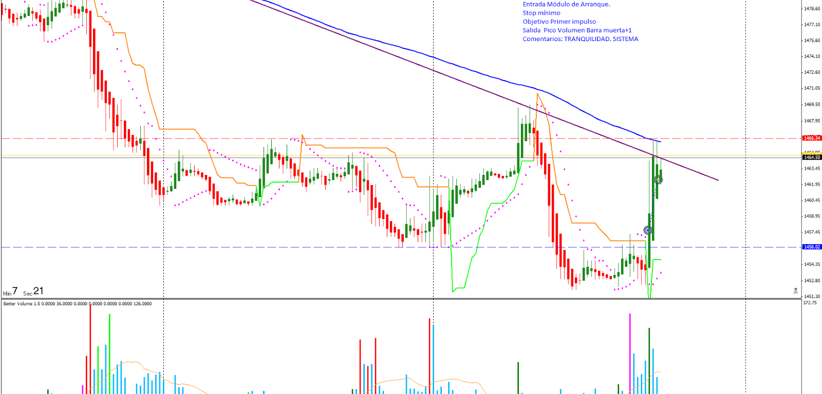 Estrategia: Apertura Americana, el precio ha hecho tres impulsos cortos, busco módulo de arranque