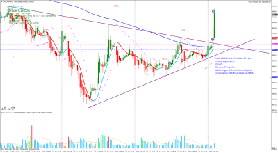 Estrategia: El precio ha realizado un primer impulso que es la corrección de todo el movimiento corto. Tengo lanzada la línea 2-4 y busco su ruptura.