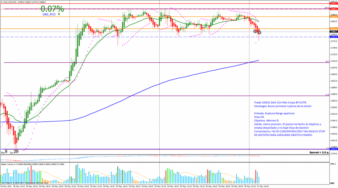 Trade 150521: Entrada Ruptura Apertura Londres. El precio rompe el mínimo y entro al mercado, coloco stop en HA. Busco objetivo interés compuesto. ME DESPISTO, EL PRECIO HACE DE SOBRA EL OBJETIVO Y NO ESTOY ATENTO PARA BAJAR STOP DE GESTIÓN. CIERRO LA POSICIÓN CON UN PEQUEÑO BENEFICIO. CIERRO SEMANA CON OBJETIVO SUPERADO.
