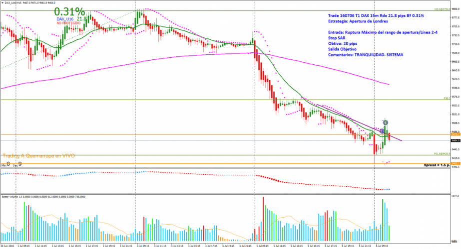 Operativa 160706 Operativa DAX 15m TRADING A QUEMARROPA 160706 DAX 15 Min TRADING A QUEMARROPA Estrategia: Apertura de Londres. Espero ruptura línea 2-4 y del máximo del rango de apertura. Entrada: Ruptura Rango de apertura/Línea 2-4. Busco trade rápido y me salgo con los objetivos. Cierro con Rdo +21.8 Pips y un Bº 0.31%. https://www.myfxbook.com/members/TaqMAM2013/taq-3321063/1536526 Saludos. Compartir: Compartir en Facebook (Se abre en una ventana nueva) Facebook Compartir en X (Se abre en una ventana nueva) X Compartir en WhatsApp (Se abre en una ventana nueva) WhatsApp Email a link to a friend (Se abre en una ventana nueva) Correo electrónico Más Compartir en Telegram (Se abre en una ventana nueva) Telegram Share on LinkedIn (Se abre en una ventana nueva) LinkedIn Share on Pinterest (Se abre en una ventana nueva) Pinterest Imprimir (Se abre en una ventana nueva) Imprimir Me gusta Cargando... Relacionado