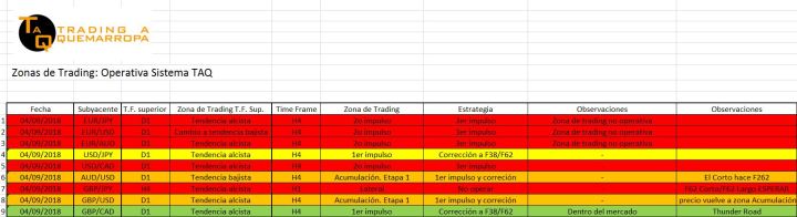 Estamos dentro del mercado en la GBP/CAD de 4 horas. Los subyacentes que están en rojo, se encuentran en zonas no operables para nuestro sistema.