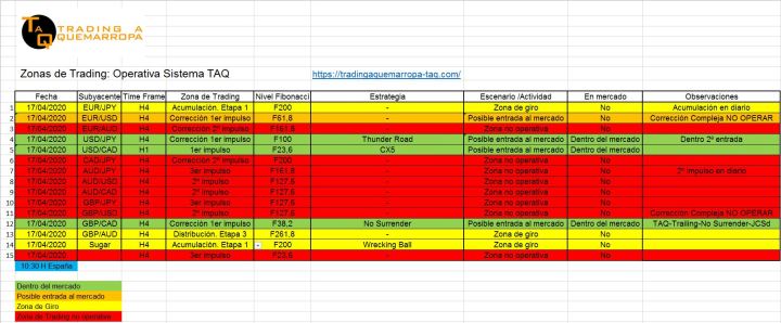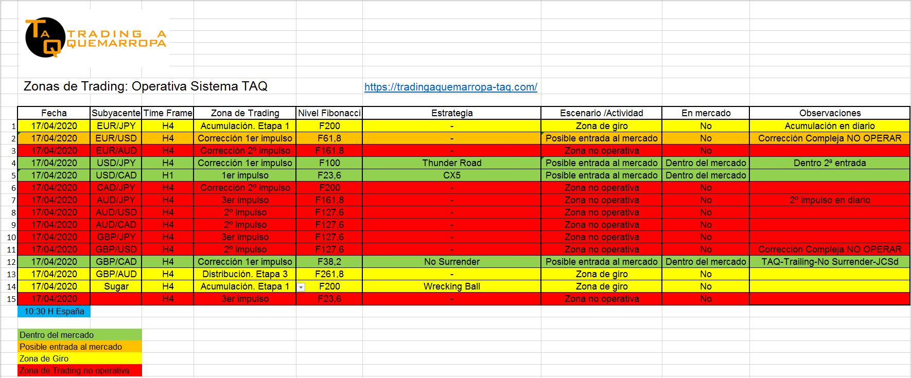 Así vemos en Trading a Quemarropa las Zonas de trading OPERATIVAS: