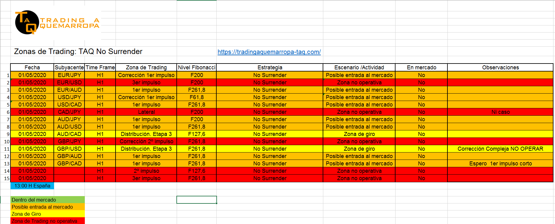 Hoy comparto con vosotros las Zonas de Trading siguiendo la Estrategia No surrender en gráficos de 1H. Parece que han despertado un poco los mercados y algunos subyacentes están haciendo los primeros impulsos, dando posibles entradas al mercado.