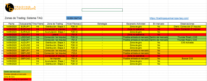 Zonas no operativas: EUR/USD, USD/JPY y GBP/AUD.