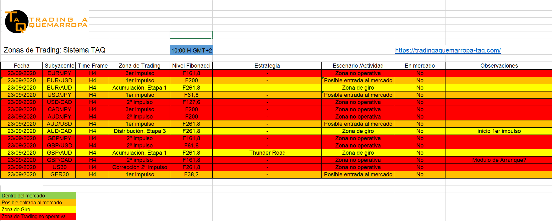 Zonas de Trading en nuestro Sistema TAQ (modificadas a las 10H).