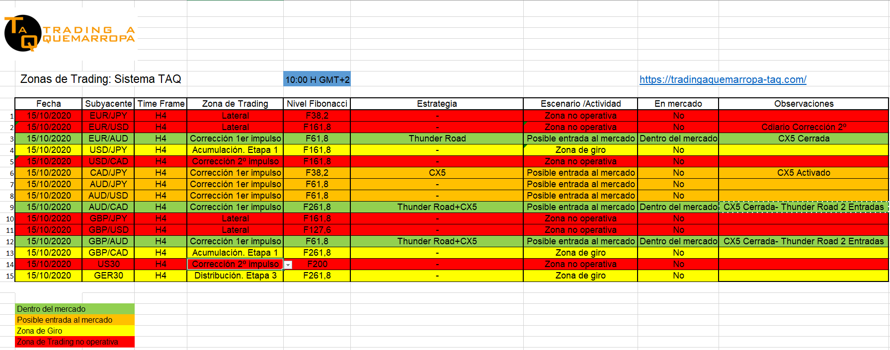 Zonas de Trading Zonas de Trading 15/10/2020 Zonas de trading OPERATIVAS en Trading A Quemarropa a las 10H GMT+2. No ha cambiado mucho respecto a ayer, seguimos dentro del mercado en el EUR/AUD, AUD/CAD y GBP/AUD siguiendo la estrategia Thunder Road+CX5. Compartir: Comparte en Facebook (Se abre en una ventana nueva) Facebook Compartir en X (Se abre en una ventana nueva) X Compartir en WhatsApp (Se abre en una ventana nueva) WhatsApp Enviar un enlace a un amigo por correo electrónico (Se abre en una ventana nueva) Correo electrónico Más Compartir en Telegram (Se abre en una ventana nueva) Telegram Compartir en LinkedIn (Se abre en una ventana nueva) LinkedIn Haz clic en Pinterest (Se abre en una ventana nueva) Pinterest Imprimir (Se abre en una ventana nueva) Imprimir Me gusta Cargando... Relacionado