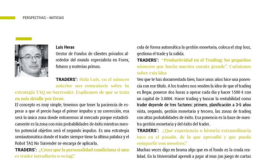 En la edición de Octubre de la revista TRADERS’ encontrarás una entrevista a Luis.