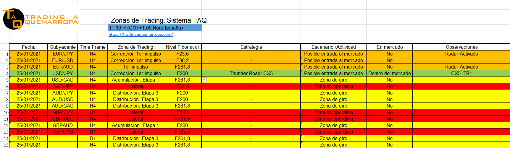 Zonas de Trading Operativas a las 11:30h GMT+1 en Trading A Quemarropa.