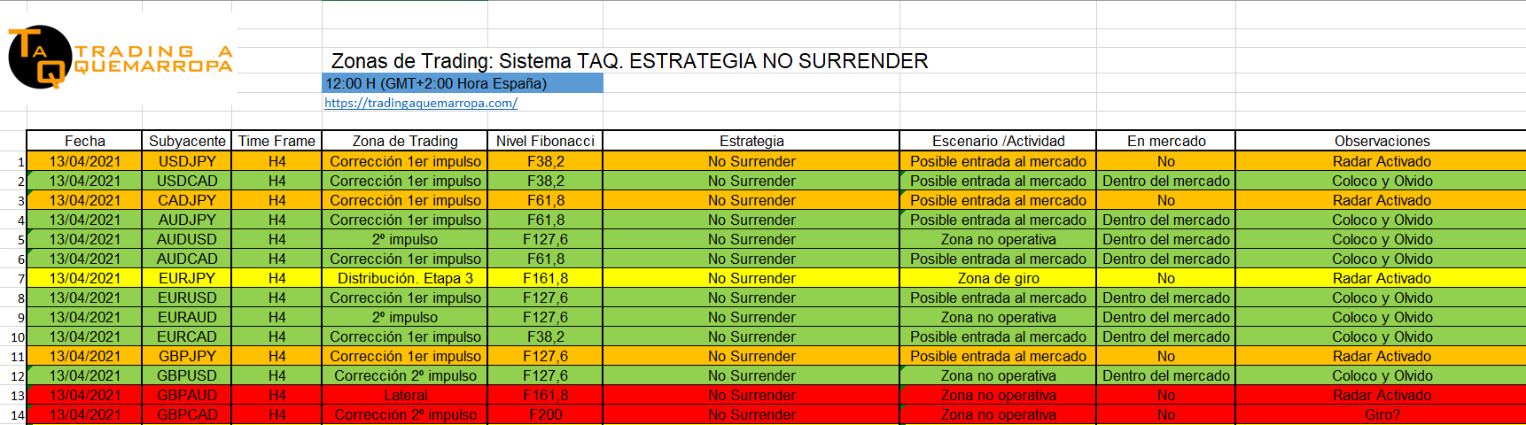 Así vemos los mercados y sus zonas de trading operativas en TAQ.