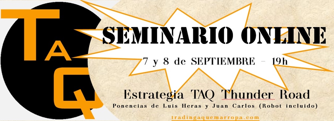 SEMINARIO ONLINE los días 7 y 8 de SEPTIEMBRE de 2021 a las 19H (horario de España) sobre la Estrategia TAQ Thunder Road.