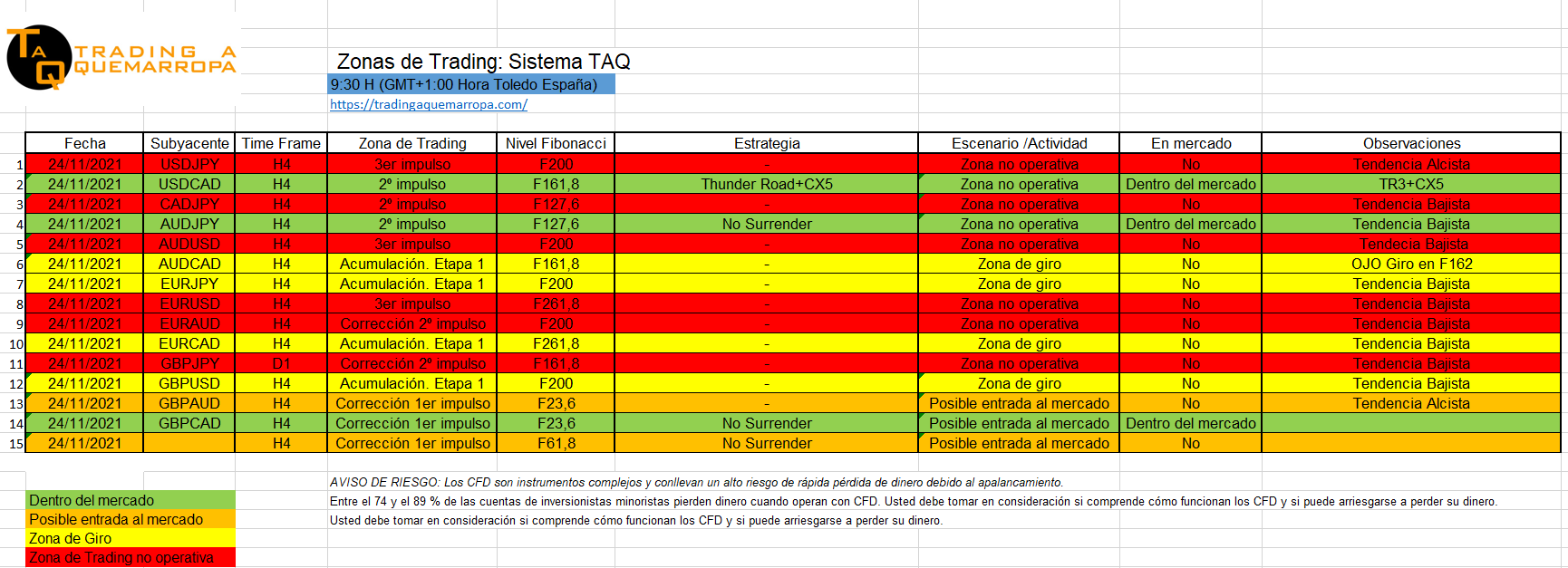 Con la estrategia TAQ No Surrender, estamos dentro en el AUD/JPY y GBP/CAD, entradas que vimos ayer en la Webinar TAQ en VIVO 6