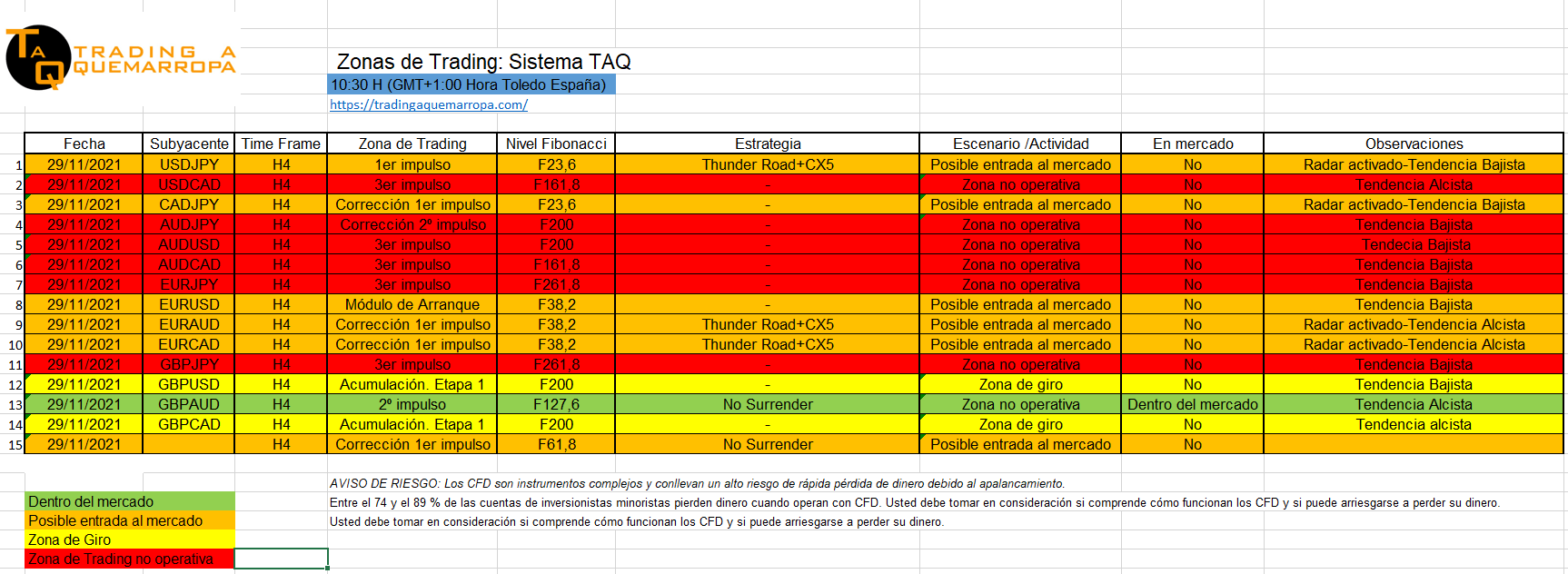 Zonas de Trading Zonas de Trading 29/11/2021 Zonas de trading Operativas en Trading A Quemarropa. Seguimos dentro en el GBP/AUD y vigilamos una posible entrada en USD/JPY, CAD/JPY, EUR/AUD y EUR/CAD con el Radar activado TAQ-Thunder Road + CX5. Os espero esta tarde a las 16H (GMT+1) en la WEBINAR TAQ EN VIVO – Regístrate en este enlace:https://register.gotowebinar.com/rt/6730792789159875853 Un saludo, Luis HerasCompartir: Compartir en Facebook (Se abre en una ventana nueva) Facebook Compartir en X (Se abre en una ventana nueva) X Compartir en WhatsApp (Se abre en una ventana nueva) WhatsApp Email a link to a friend (Se abre en una ventana nueva) Correo electrónico Más Compartir en Telegram (Se abre en una ventana nueva) Telegram Share on LinkedIn (Se abre en una ventana nueva) LinkedIn Share on Pinterest (Se abre en una ventana nueva) Pinterest Imprimir (Se abre en una ventana nueva) Imprimir Me gusta Cargando... Relacionado