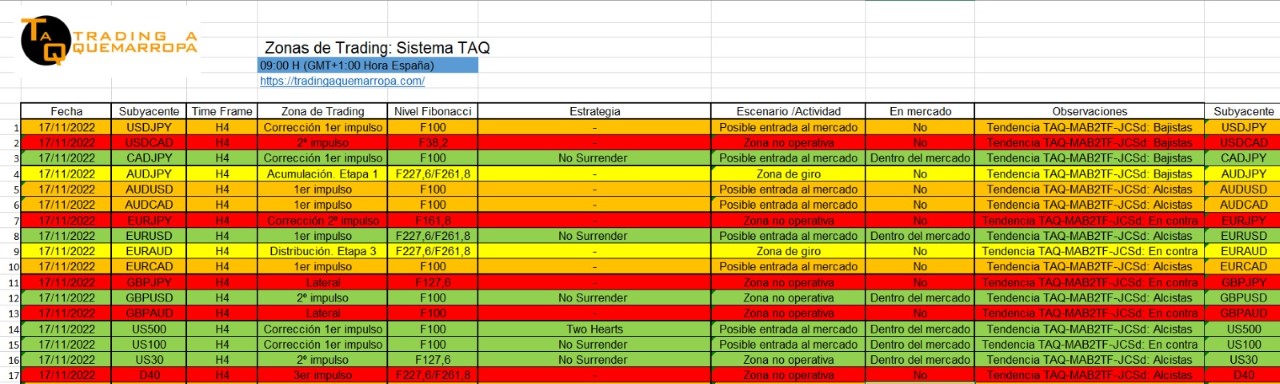 Así vemos las zonas de trading operativas en Trading A Quemarropa a las 9H.