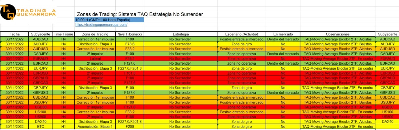 Respecto a la webinar del lunes, en la que hablamos sobre volumen (ver webinar TAQ en VIVO 48), seguimos dentro con la estrategia TAQ No Surrender en el AUD/CAD, CAD/JPY, EUR/CAD y GBP/USD.
