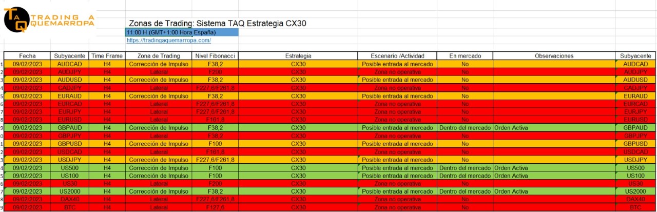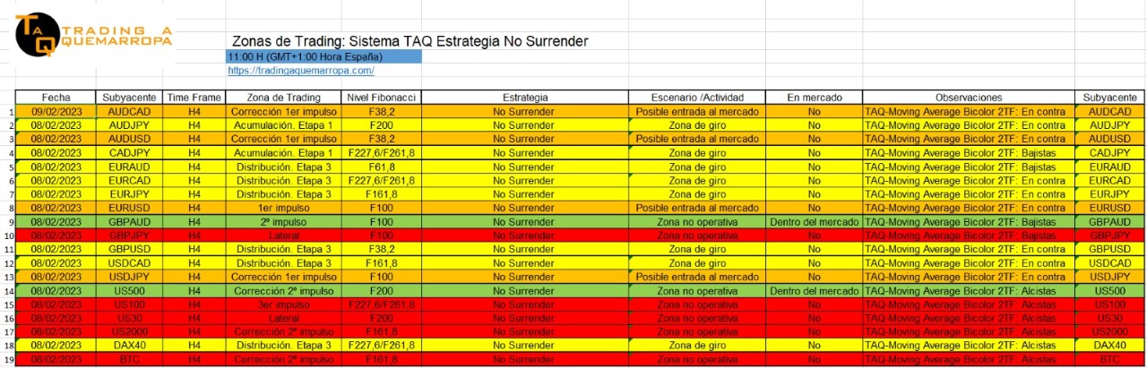 Zonas de Trading 09/02/2023 Zonas de Trading Así vemos en Trading a Quemarropa cómo van evolucionando los mercados respecto a la Webinar TAQ en VIVO 55 del lunes. Estrategia TAQ No Surrender: Seguimos dentro del mercado. Estrategia TAQ CX30: Dentro del mercado en la GBP/AUD, US500, US100 y US200. Seminario gratuito Estrategia TAQ No Surrender Compartir: Compartir en Facebook (Se abre en una ventana nueva) Facebook Compartir en X (Se abre en una ventana nueva) X Compartir en WhatsApp (Se abre en una ventana nueva) WhatsApp Email a link to a friend (Se abre en una ventana nueva) Correo electrónico Más Compartir en Telegram (Se abre en una ventana nueva) Telegram Share on LinkedIn (Se abre en una ventana nueva) LinkedIn Share on Pinterest (Se abre en una ventana nueva) Pinterest Imprimir (Se abre en una ventana nueva) Imprimir Me gusta Cargando... Relacionado
