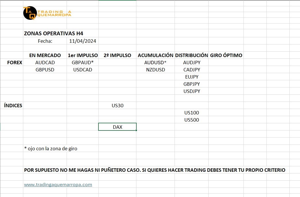 Zonas de Trading de hoy 11 de abril a las 10:30 de la mañana (hora de España).