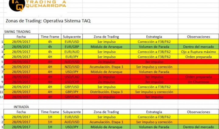 Zonas de Trading 29/09/2017