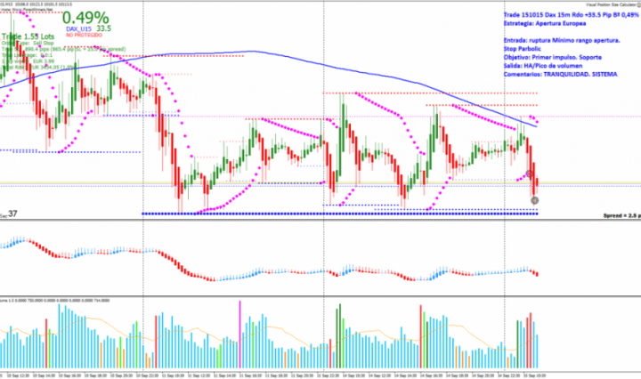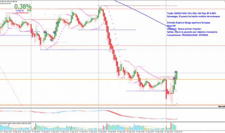 1501001 DAX 15m TRADING A QUEMARROPA Estrategia: Después de tres movimientos largos espero módulo de arranque para entrar corto. Trade: Entrada Módulo de Arranque Pauta 1. Busco el mínimo del Rango de apertura y la ruptura de la línea 2-4. … Continúa leyendo 151001 Operativa DAX y GBP/JPY 15m. Trading a Quemarropa
