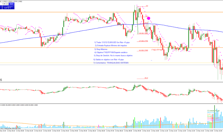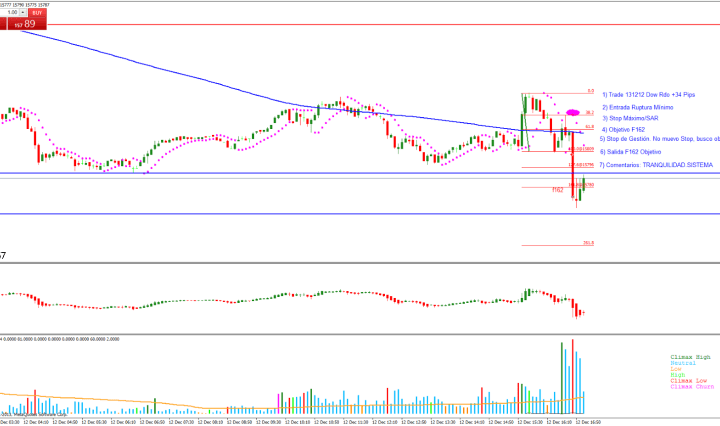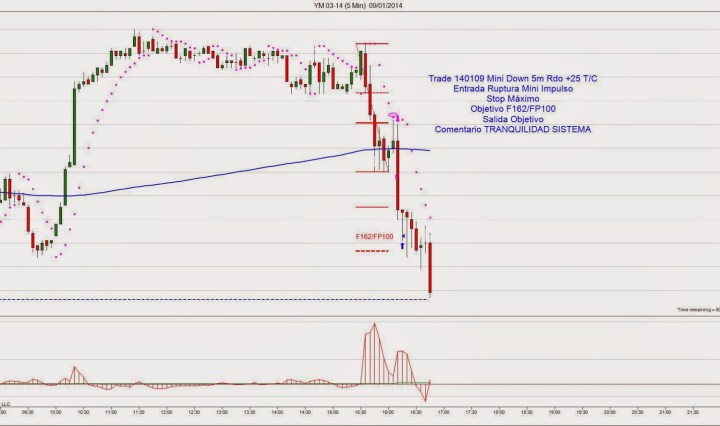 140109 DOW 5m. TRADING A QUEMARROPA Estrategia: El precio ha hecho un impulso corto. Busco corrección para entrar al mercado. Trade 130109: Entrada Ruptura Mínimo del Impulso. Después de un primer movimiento corto el precio hace la corrección y entro … Continúa leyendo 140109 DOW 5m. TRADING A QUEMARROPA