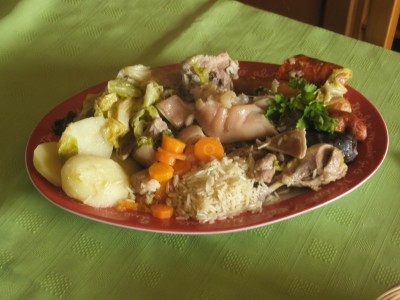 Ingredientes (4 personas): 1 Repollo (col verde). 4 patatas. 2 dientes de ajo. 4 tomates. 1/2 kg de tocino blanco. 100 g de tocineta. 1 butifarra blanca. 1 butifarra negra. Aceite de oliva. Sal. Perejil y romero para decorar Elaboración: … Continúa leyendo TRINCHAT DE REPOLLO
