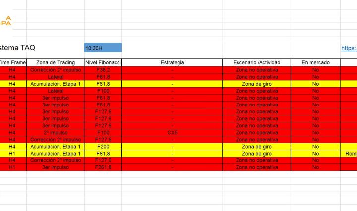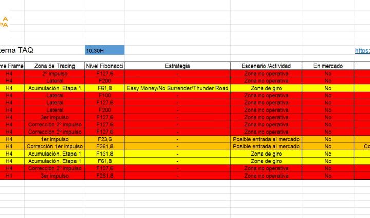 Sistema TAQ – Zonas operativas a las 17:00 en España. Por si aún no lo has visto, comparto el enlace de la publicación de esta mañana: TAQ en VIVO: Webinar 25 – 19/05/2020. Giros del mercado Muy interesante y a … Continúa leyendo Zonas de Trading 21/05/2020